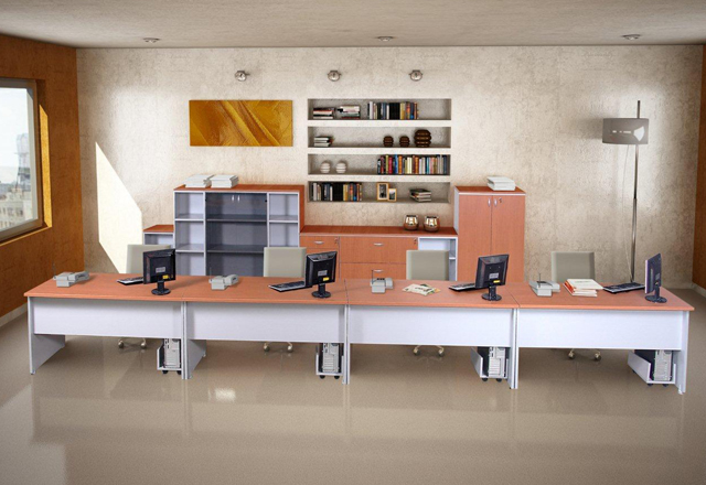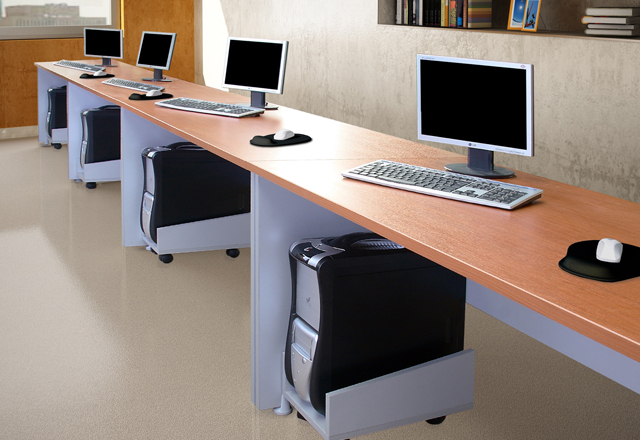 Islas de trabajo construidas en melamina, con abs de 2mm, con regatones de nivelación. Opciones: Todo en 18mm Tapa 25mm resto 18mm Todo en 25mm Bandeja portateclado Cajonera fija Mampara divisoria Tapa pasacable