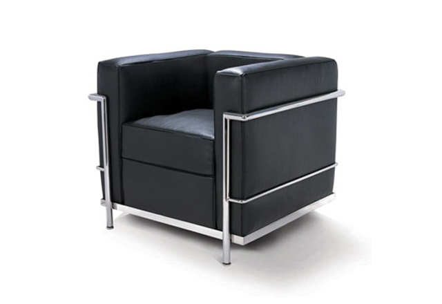 Sillón de un cuerpo, con almohadones, tapizado en tela, cuero ecológico o cuero, estructura tubular cromada.Negro.