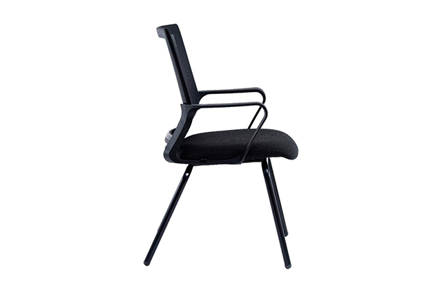 Silla inyectada en color negro. Respaldo inyectado en nylon. Apoya brazos integrados.