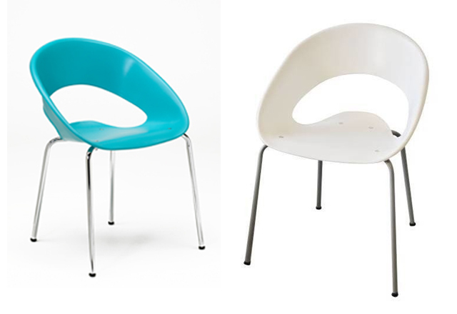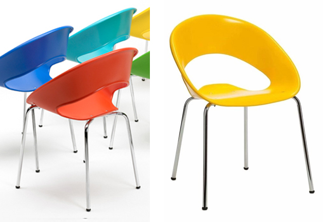 Silla en homopolímero de alto impacto con patas cromadas. Opciones: Estructura gris texturada. Plásticos en color Negro, Blanco, Gris, Azul, Rojo.